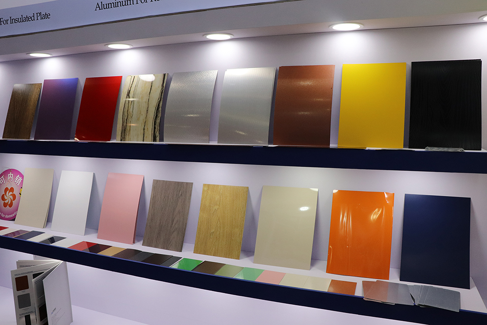 本次展会,力同铝业聚焦带来了多样彩涂铝卷系列产品。3D立体同步木纹/石纹铝蜂窝板带来视觉与质感的双重升级;漫反射、肤感、抗菌等功能型彩涂铝卷精准匹配建筑装饰与全铝家居场景;可定制宽度1600mm以内、厚度0.03-1.5mm的灵活生产能力;产品可加工成铝塑板、铝蜂窝板、金属屋面板、卷帘门窗等用途,让不少建筑采购商驻足细询。