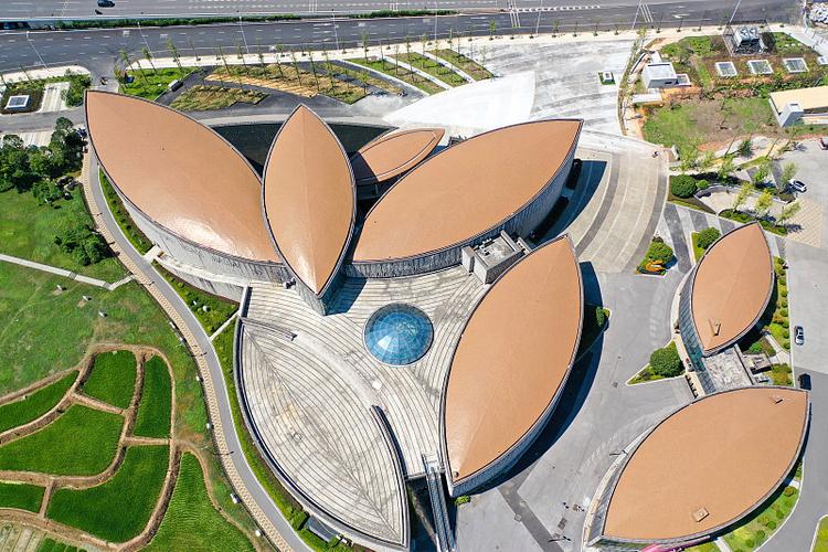 隆平博物館的屋面系統(tǒng)采用菱形平鎖扣系統(tǒng),屋面由多張400*400mm的菱形屋面板組合而成
